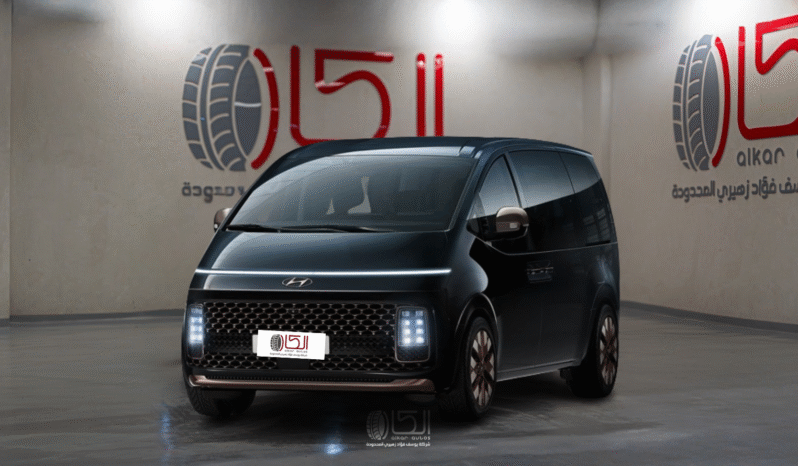 The 2025 Hyundai Staria Full Option Diesel in black comes with a modern design that combines spaciousness and luxury, making it an ideal choice for large families or comfortable transport. It is powered by a 2.2-liter CRDi diesel engine producing around 177 horsepower, paired with an automatic transmission and front-wheel drive, delivering smooth performance and relatively good fuel efficiency within its class. The vehicle accommodates up to 11 seats arranged across multiple rows, with a spacious interior and rear air vents to ensure passenger comfort.